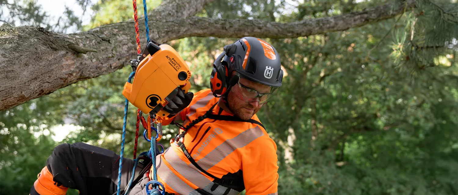 Der Husqvarna Gehörschutzbügel mit Netzvisier bietet Schutz beim Freischneiden und bei anderen Arbeiten, bei denen man keinen Helm benötigt.