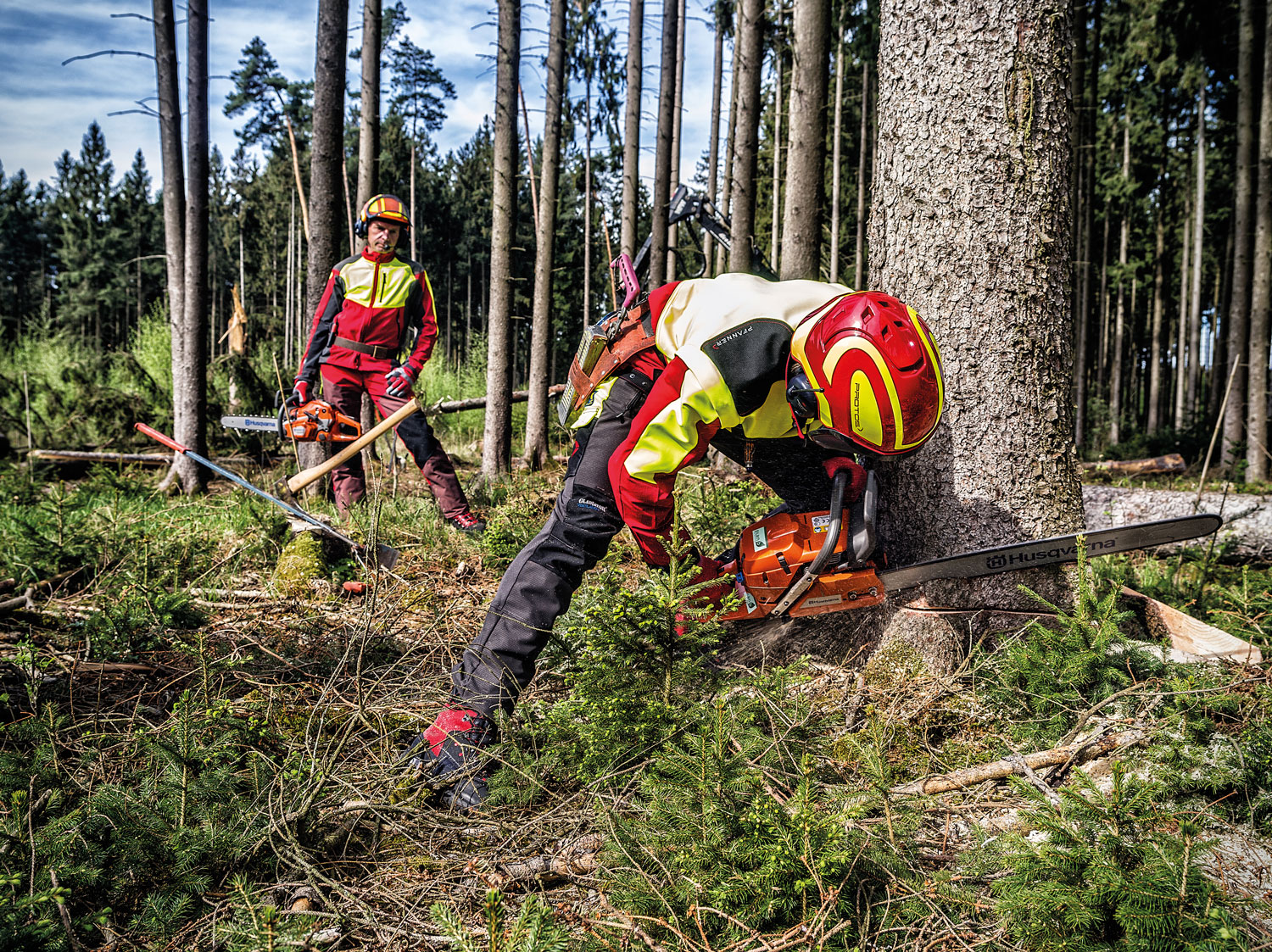 Der neue Haix Protector Forest 2.1 ist mit verbesserter Profilsohle für jeden Einsatz im Forstbereich bestens geeignet. Das überarbeitete Design in den Signalfarben Rot und Gelb sorgt auch bei widrigen Witterungsverhältnissen für gute Sichtbarkeit. Durch das Zwei-Zonen-Schnürsystem kann der Schuh für eine optimale Passform separat an Fuß- und Schaftbereich angepasst werden. Haix Climate System nutzt die beim Gehen entstehende Pumpbewegung um Feuchtigkeit zu Lüftungsöffnungen an Schaft und Zunge zu transportieren. Die rutschhemmende Sohle vermindert punktuellen Druck und sorgt für guten Tritt in unwegsamem Gelände. Dieser Schuh eignet sich auch für die optionale Anwendung von Spikes. Schnittschutzklasse 2 (24m/sec.) VIBRAM® Sohle Gore-Tex® Atmungsaktiv mit Climate System ZweiZonen-Schnürung Wiederbesohlbar Zertifiziert für orthopädische Einlagen Höhe: 22 cm Obermaterial: Veloursleder Lederdicke: 2,8 – 3,0 mm Sicherheitsklasse: SB