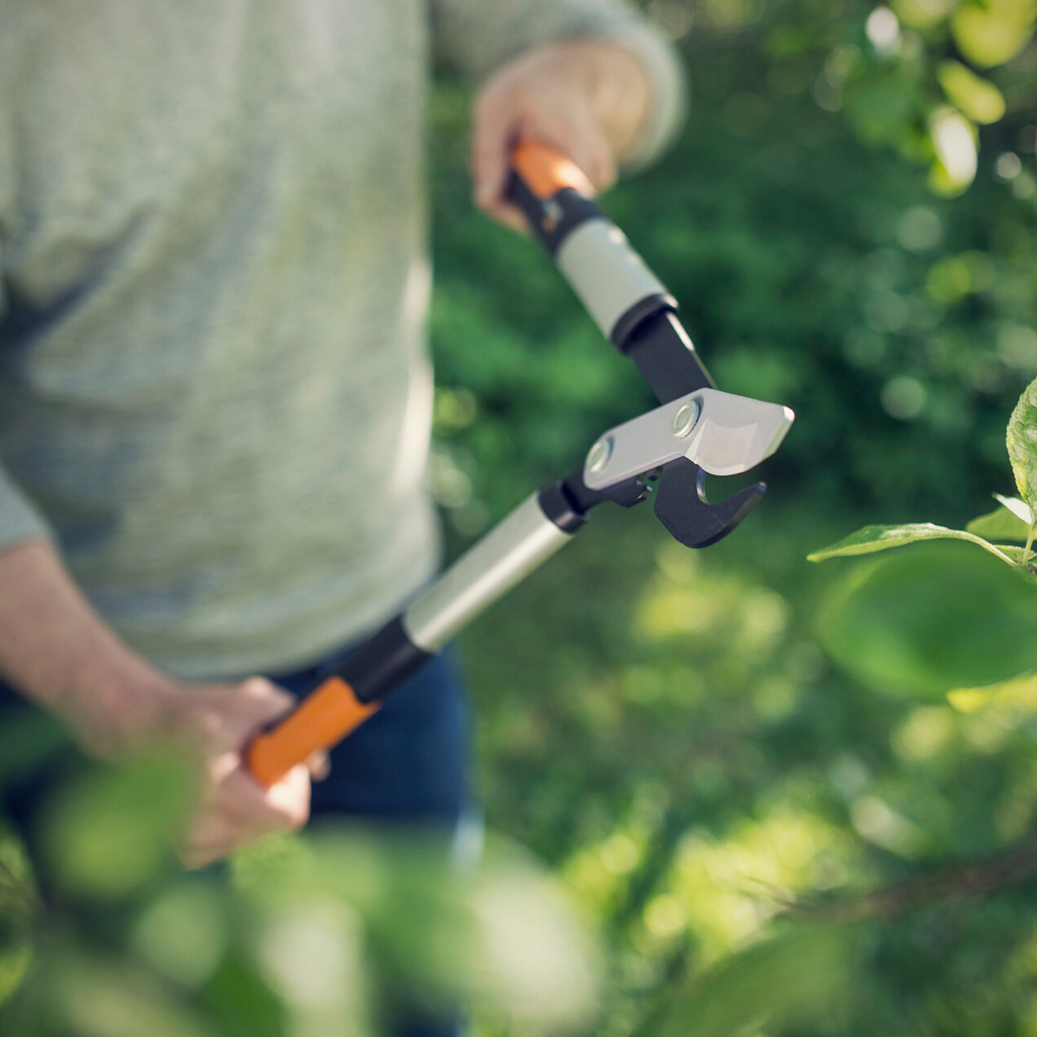 Die teleskopierbare Fiskars Bypass-Schneidgiraffe UPX86 eignet sich zum Schneiden von frischem Holz bis zu 32 mm Durchmesser und ist auch kombinierbar mit der Fiskars Adapter-Baumsäge sowie dem Fiskars Obstpflücker. Dank des teleskopierbaren Stiels ist eine maximale Gesamtreichweite samt Benutzer bis zu 6 Meter Höhe möglich. Der Schneidkopf ist um bis zu 230° drehbar und in beliebiger Position fixierbar. Das spezielle Getriebe sorgt für maximale Schneidkraft bei minimalem Kraftaufwand. Für saubere, reibungslose Schnitte sorgt die antihaftbeschichtete obere Klinge. Die orangefarbene Klingenstütze ermöglicht gute Sichtbarkeit und präzise Steuerung. Zum Schneiden von frischem Holz bis zu Ø 32 mm Gesamtreichweite mit Benutzer ca. 6 Meter Kombinierbar mit Adapter-Baumsäge und Obstpflücker Flexibler Schneidkopf Rutschfeste Griffe