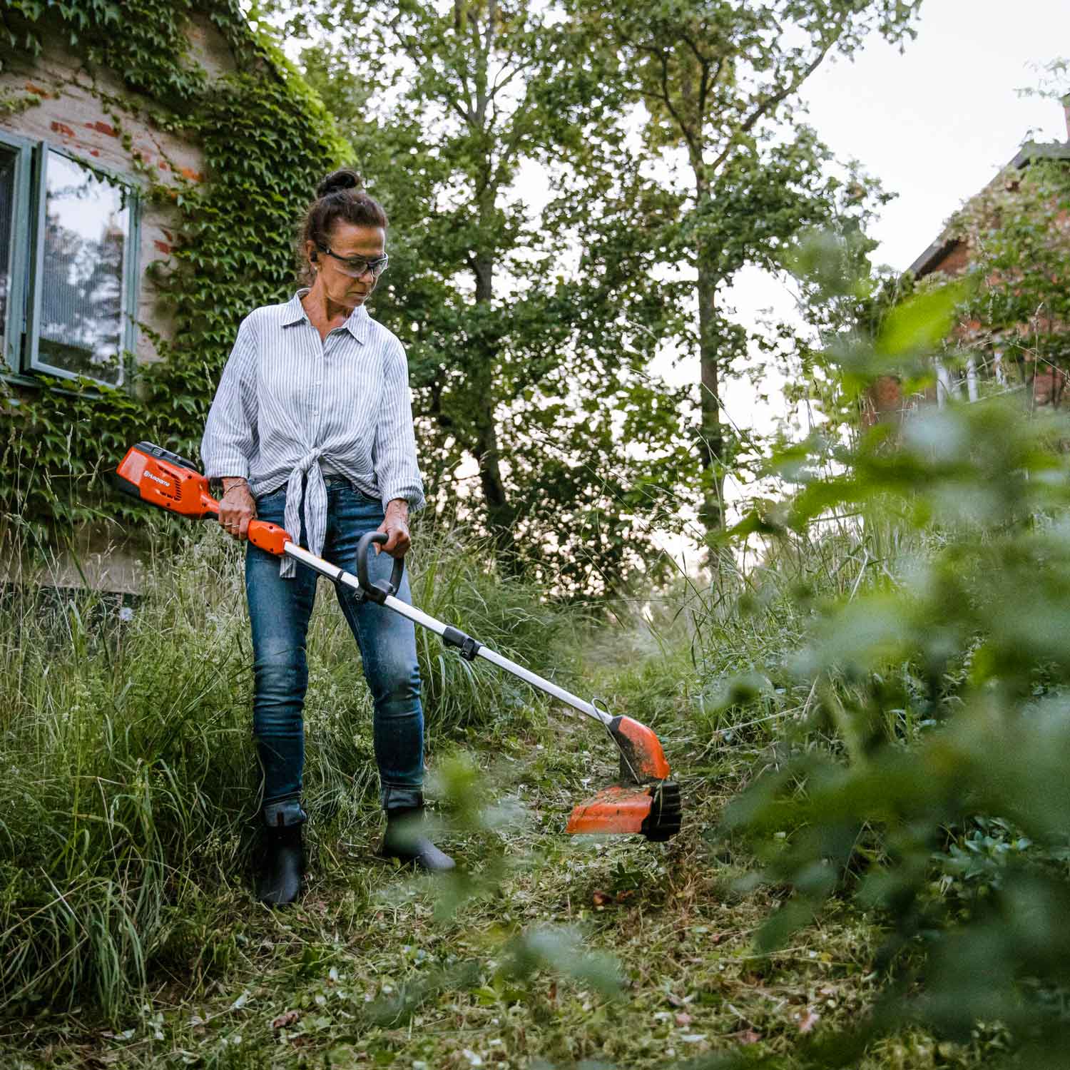 Der Husqvarna 115iL Akku-Trimmer ist perfekt zum Bearbeiten von Rasenkanten und kleineren Grünflächen. Die Nutzung ist leicht, einfach und komfortabel zugleich. Die intuitiv angeordneten Bedienelemente, sowie die Sofort-Starthilfe ermöglichen problemloses Starten des BLDC-Motors. Dank der niedrigen Geräusch- und Schallleistungswerte wird das Arbeitsumfeld nicht gestört. Ein besonders robustes System mit Doppelfaden und Tap'n'Go sorgt für eine schnelle Fadennachführung. Dank dem höhenverstellbaren Schaft kann die optimale Arbeitshöhe an die eigene Körpergröße angepasst werden. Auch der Griff lässt sich anpassen für ein komfortables und kontrolliertes Arbeiten.