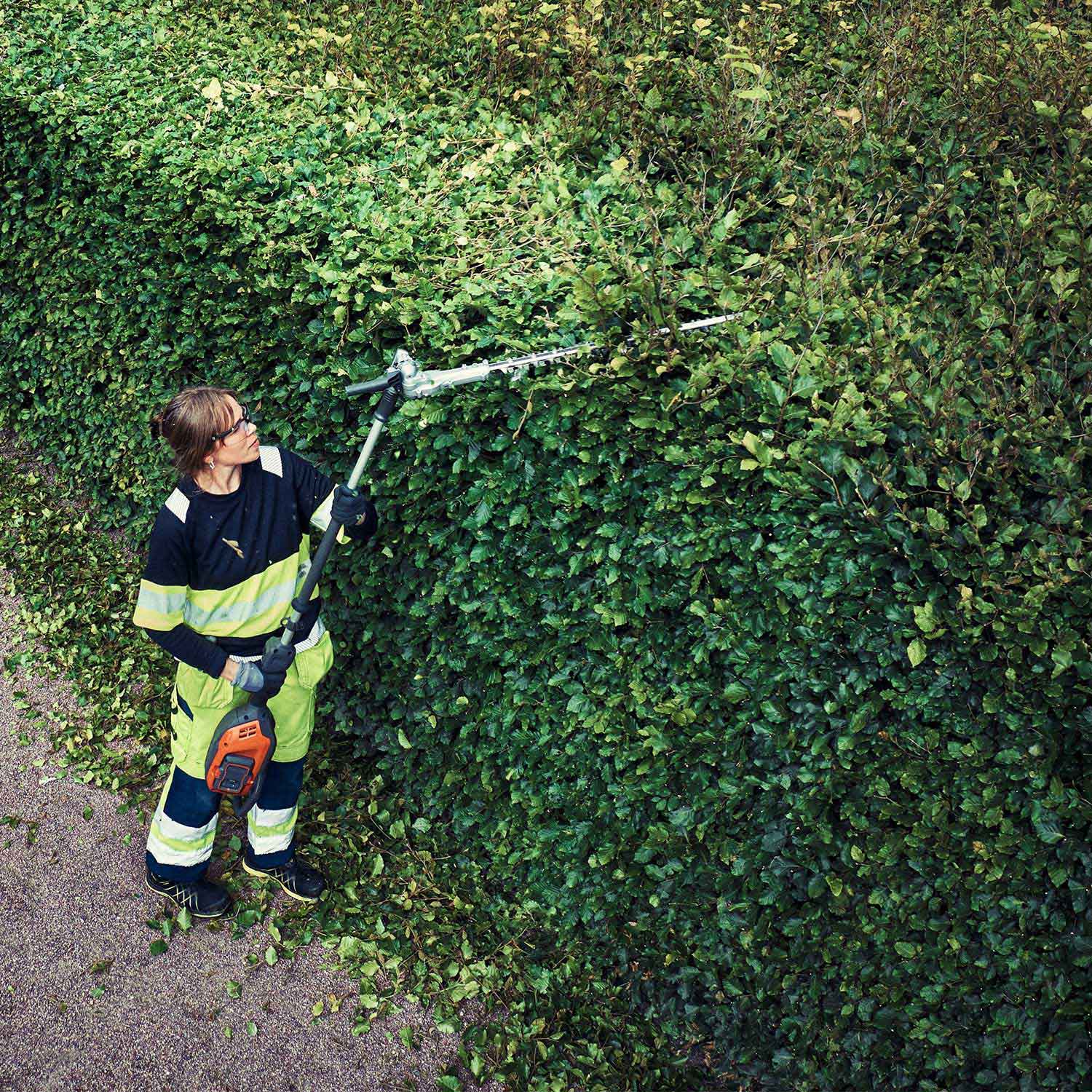 Vielseitige Stab-Heckenschere mit großer Reichweite und 7 Schnittpositionen Husqvarna 120iTK4-H – eine akkubetriebene Stab-Heckenschere, die, bei niedrigem Geräuschpegel, Leistung wie ein Benzingerät bietet. Sie wird mit einem Heckenscherenaufsatz geliefert, kann aber auch mit einem Hochentaster-Anbaugerät kombiniert werden, was die 120iTK4-H zu einem vielseitigen Werkzeug macht, das sowohl zum Heckenschneiden als auch zum Beschneiden von Ästen verwendet werden kann. Ausgestattet mit einem Teleskoprohr mit einer Reichweite von bis zu 4 m und einer geteilten Welle, was den Transport erleichtert. Lieferumfang: Husqvarna 120iTK4-H, Wartungs- und Bedienungsanleitung, ohne Akku und Ladegerät