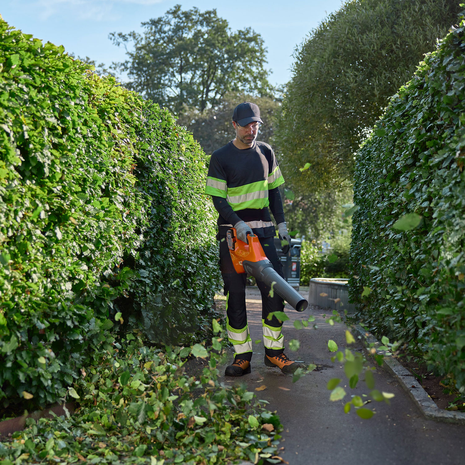 Der Husqvarna 530iB ist ein leistungsstarker und hocheffizienter Akku-Laubbläser. Er ist mit einem effizienten bürstenlosen Motor ausgestattet, der einen niedrigen Energieverbrauch und eine lange Betriebsdauer ermöglicht. Sein leichtes, kompaktes und gut ausbalanciertes Design macht ihn für den professionellen Ganztagseinsatz geeignet, und sein niedriger Geräuschpegel ermöglicht den Einsatz in öffentlichen, lärmsensiblen Umgebungen. Wenn eine höhere Blasleistung erforderlich ist, kann die Boost-Funktion auf einfache Weise aktiviert werden. Mit der Tempomatfunktion kann eine feste Blasgeschwindigkeit eingestellt werden, um kontinuierlich ohne Nachjustierung zu arbeiten und sich ausschließlich auf das Entfernen von Laub und Schmutz zu konzentrieren. Die Tempomatfunktion kann auch im Boost-Modus aktiviert werden. Der 530iB ist Teil des flexiblen Husqvarna BLi-X 36V-Akkusystems.
