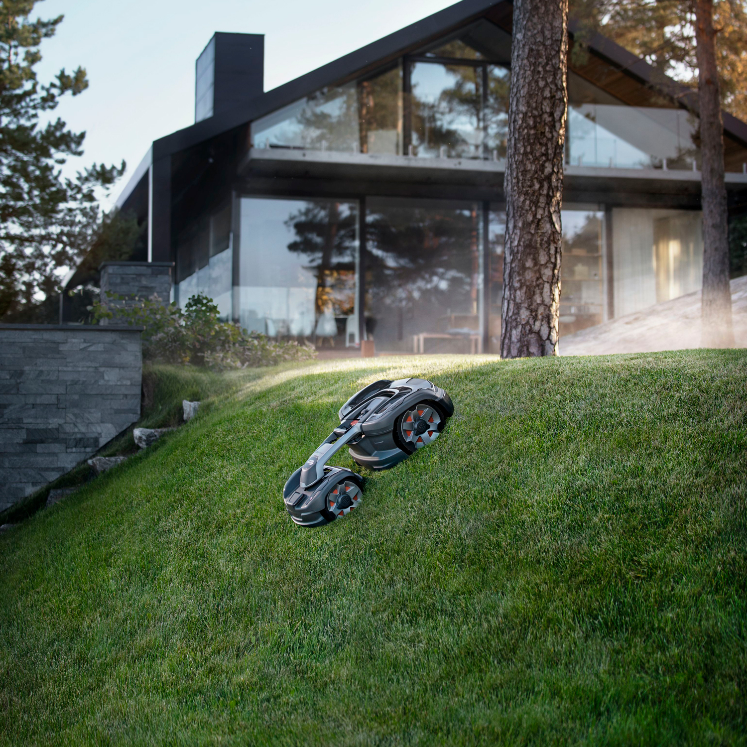 Der Husqvarna Automower 435X AWD ist ein Spitzenmodell mit Allrad-Antrieb, das Rasenflächen bis zu 3.500 m² meistert und Hindernisse, unwegsames Gelände und Steigungen von beeindruckenden 70 % bewältigt. Der Mähroboter verfügt über ein X-Line-Design mit LED-Scheinwerfern, eine Hinderniserkennung und eine intuitive Bedienung mit Automower Access. Mit dem Automower Connect-Modul mit GPS-Tracking lassen sich Befehle bequem vom Smartphone steuern – egal, wo du dich befindest.
