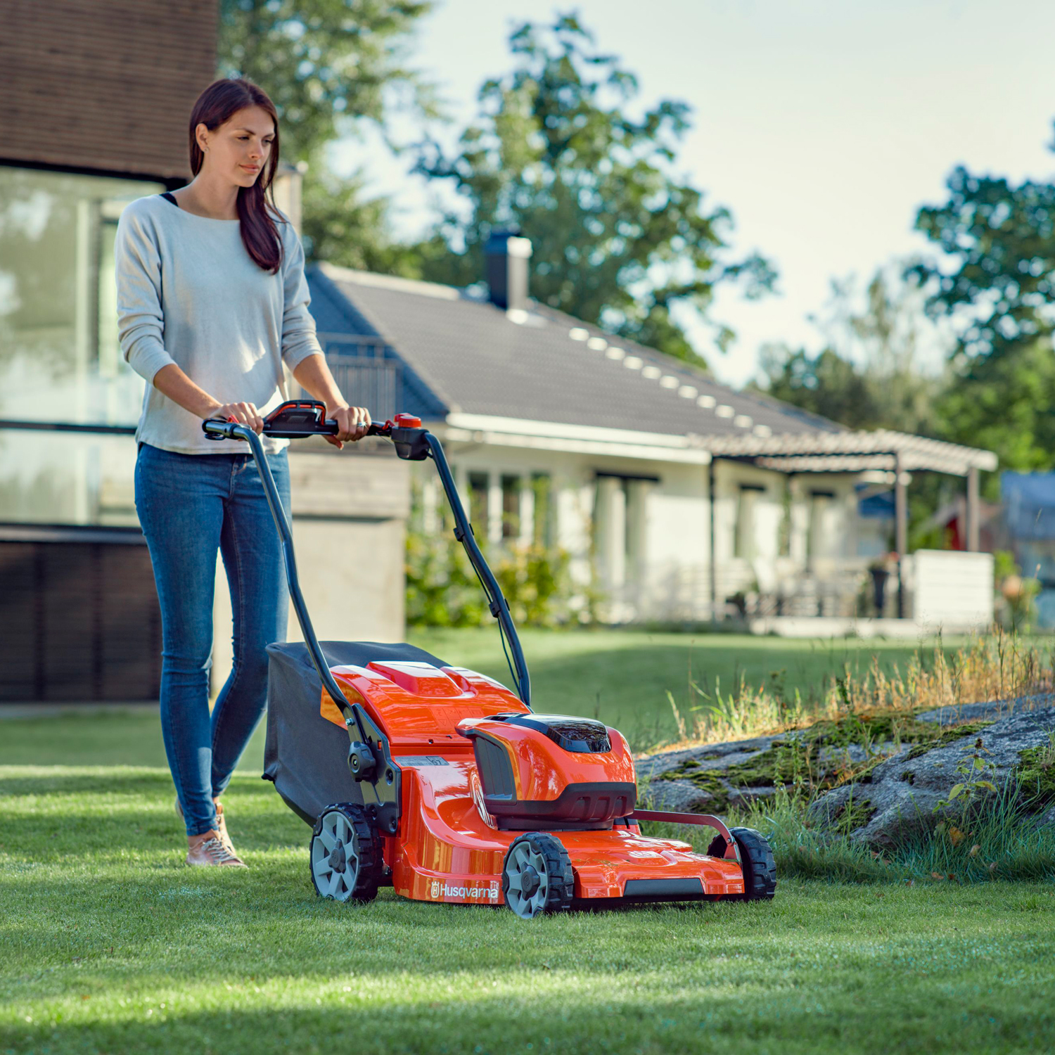 Akku-Rasenmäher mit vergrößerter Schnittbreite und zwei Akku-Steckplätzen, die mit allen Husqvarna Akkus kompatibel sind, für mehr Komfort, Wirtschaftlichkeit und Laufzeit. Ruhiger, effizienter rauchfreier Betrieb ohne direkte Emissionen. Das ergonomische Design umfasst eine leicht verständliche Tastatur, einfache Höheneinstellung und einfaches Manövrieren. Eigenantrieb für leichteres Mähen von mittelgroßen Rasenflächen. Die Bluetooth-Konnektivität bietet Benutzern Produktdaten sowie Informationen und ermöglicht einen effizienteren und effektiveren Service.