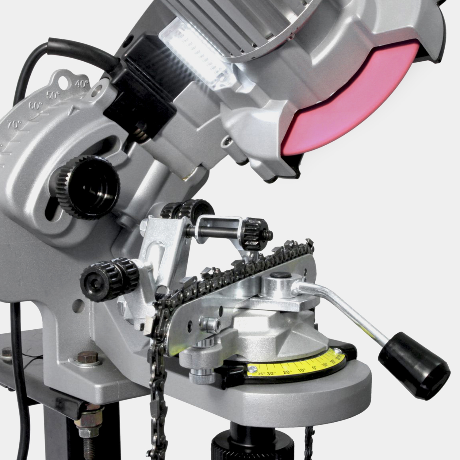 Das elektrische Kettenschärfgerät Jolly Evo ermöglicht ein präzises Schärfen von Motorsägeketten aller gängigen Größen (1/4“ - .325“ – 3/8“ - .404“). Der Arbeitsbereich wird mit einer hellen LED-Leuchte beleuchtet zur besseren Kontrolle. Das Gerät kann an Wand, Werkbank oder Schraubstock montiert werden. Lieferung inkl. drei Schleifscheiben.
