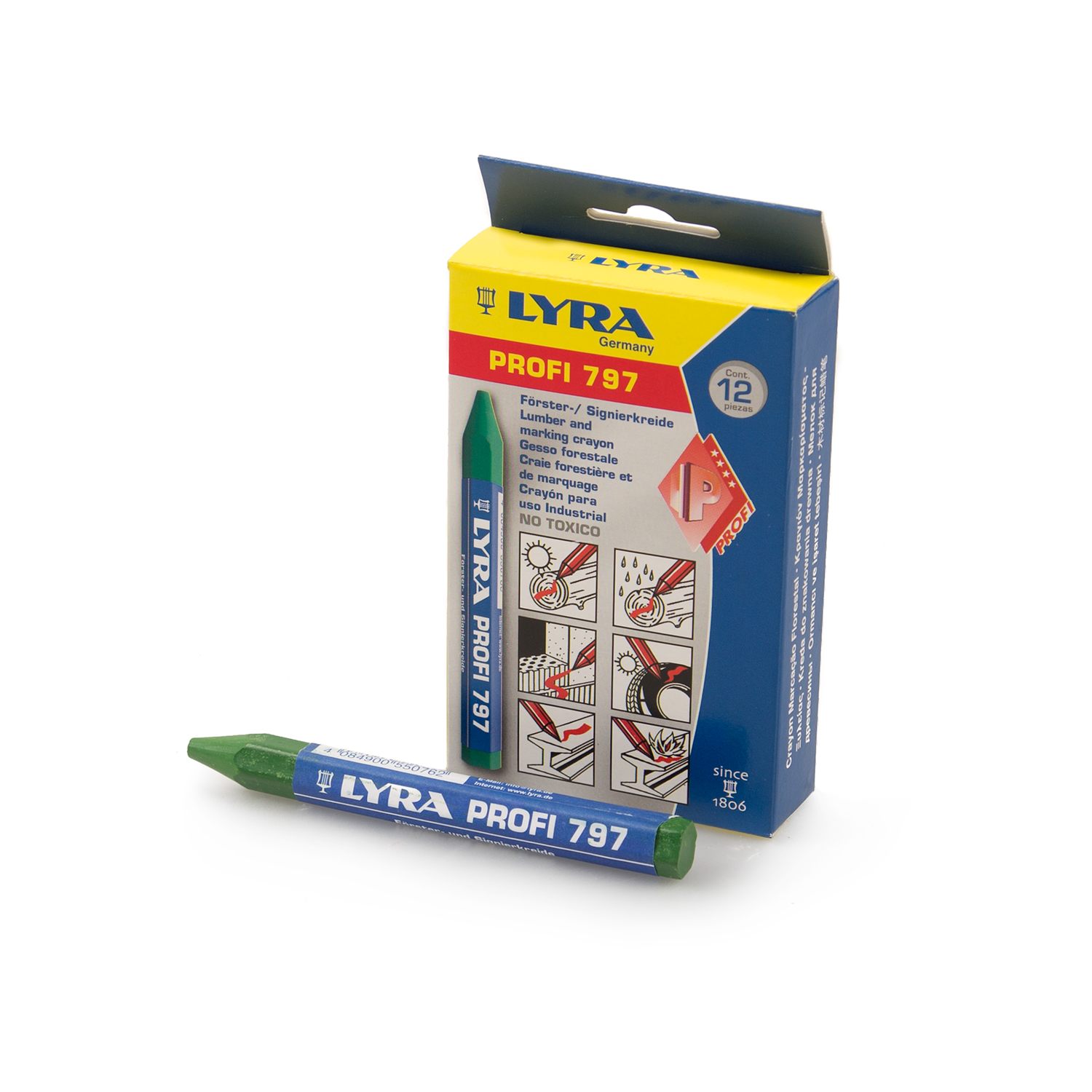 Die Lyra Förster- und Signierkreiden auf Ölbasis sind für professionelle Anwendungen auf trockenem und nassem Holz bestens geeignet. Sie haben eine extrem hohe Pigmentierung, sind sehr bruchfest und etikettiert um verschmutzte Finger zu vermeiden.