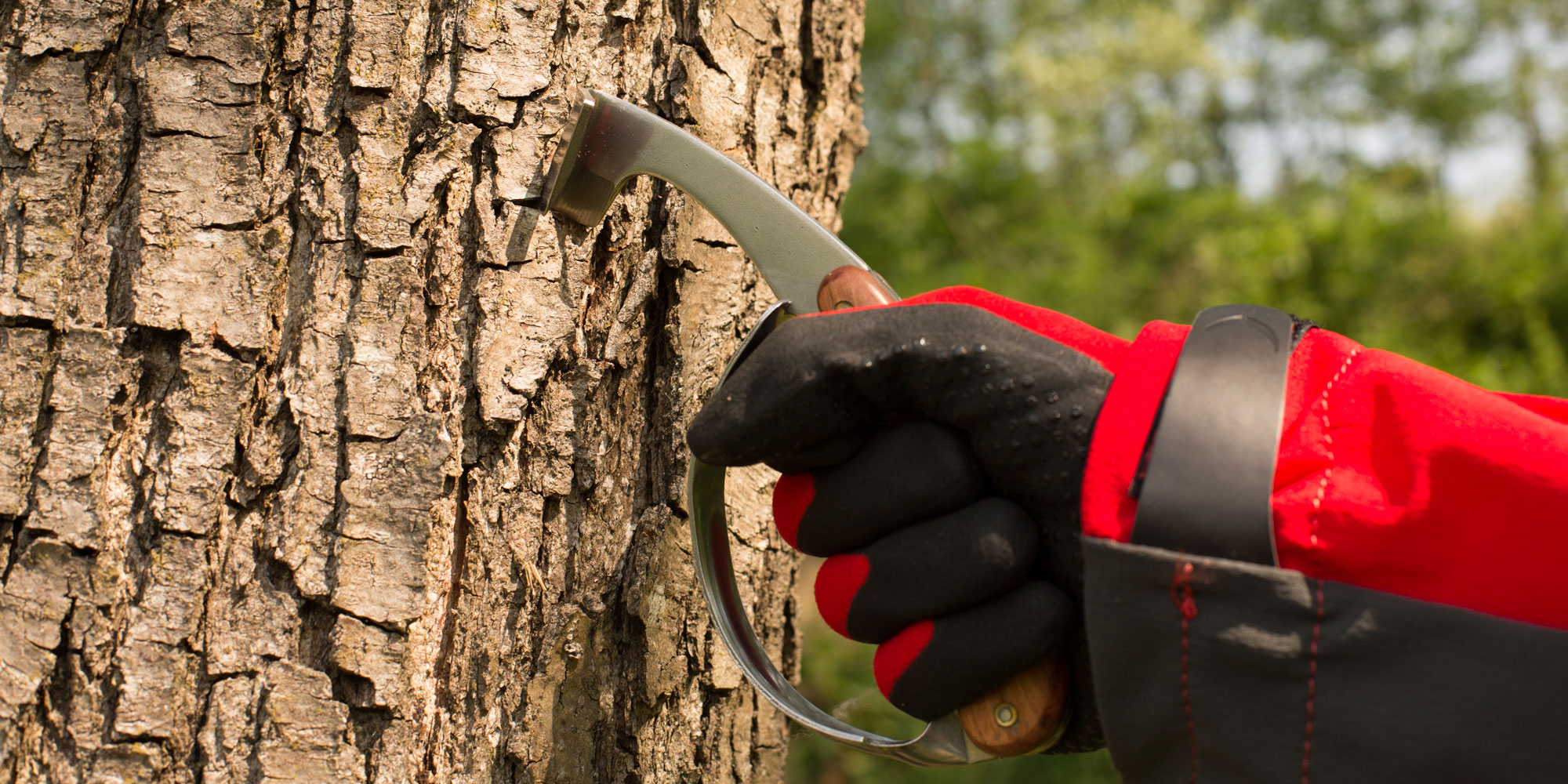 Der Reißhaken zum „scharfen“ Markieren von Bäumen lässt sich einfach zusammenklappen und in die Hosen- oder Jackentasche wegstecken. Der Bügel schützt vor Verletzungen beim Abrutschen.