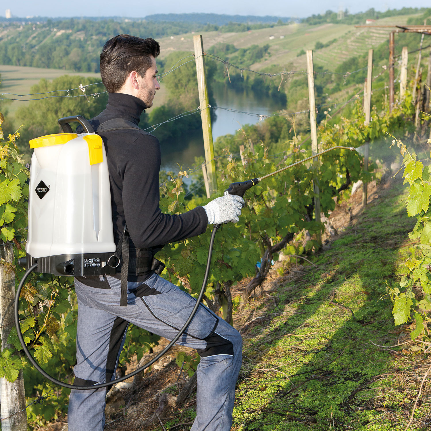 Mesto Akku-Rückenspritze 3626 / e.RS185 inklusive 18 V 4Ah Akku und EU-Ladegerät Die MESTO e.flow Rückenspritze mit AMPShare Akku-System ist für den Einsatz im Pflanzenschutz konzipiert und bietet mit dem Potentiometer variable Leistungseinstellungen. Die neue Akku-Rückenspritze ist kompatibel mit allen Bosch 18 V-Akkus und eignet sich perfekt für die gezielte Ausbringung von Pflanzenschutz-, Dünge- und Schädlingsbekämpfungsmitteln. Mit ergonomischer Rückenfläche, Profi-Tragesystem und präzisem Messing-Spritzrohr. Einfache Reinigung und Wartung für eine langanhaltende Nutzung. Max. Druck 4,8 Bar / 69 psi Kompatibel mit allen Bosch AMPShare 18 V-Akkus Ladeanzeige am Akku Betriebszeit 60-140 Minuten je nach Durchfluss Ergonomische Rückenfläche Profi-Tragesystem Sieb gegen Verschmutzung Ersatzteilfach Spritzrohrhalter 18 L Füllinhalt Lieferumfang: Mesto Akku-Rückenspritze 3626 / e.RS185 inklusive 18 V 4Ah Akku und EU-Ladegerät