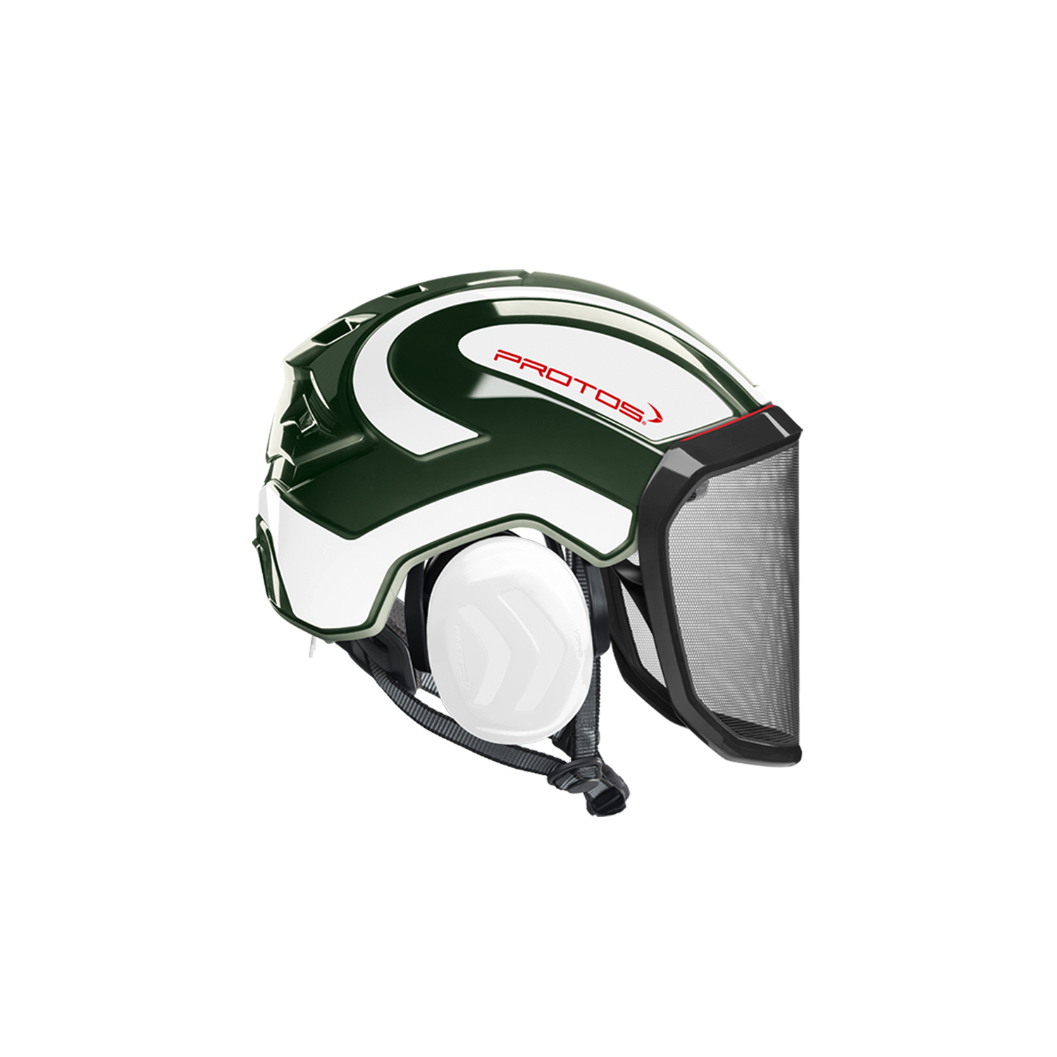 Der perfekte Sitz und optimale Halt des Protos Integral Arborist machen ihn perfekt für Arbeiten in der Höhe, bei der ein Gesichtsschutz unverzichtbar ist. Der Gehörschutz und Gesichtsschutz sind in die Schale des Kopfschutzes integriert und verhindern somit ein Hängenbleiben an Ästen und hervorstehenden Teilen. Die spezielle Konstruktion des Protos Integral ermöglicht der kühlenden Luft von allen Seiten einzuströmen und durch den Lüftungsschieber zu entweichen. Dies gewährleistet, dass der Kopf auch bei den anstrengendsten Tätigkeiten nicht kollabiert. Die Führung des Kinnriemens ist so konstruiert, dass er nicht unter den Gehörschutz rutschen kann und dort die Lärmdämmung oder den Tragekomfort beeinflusst.