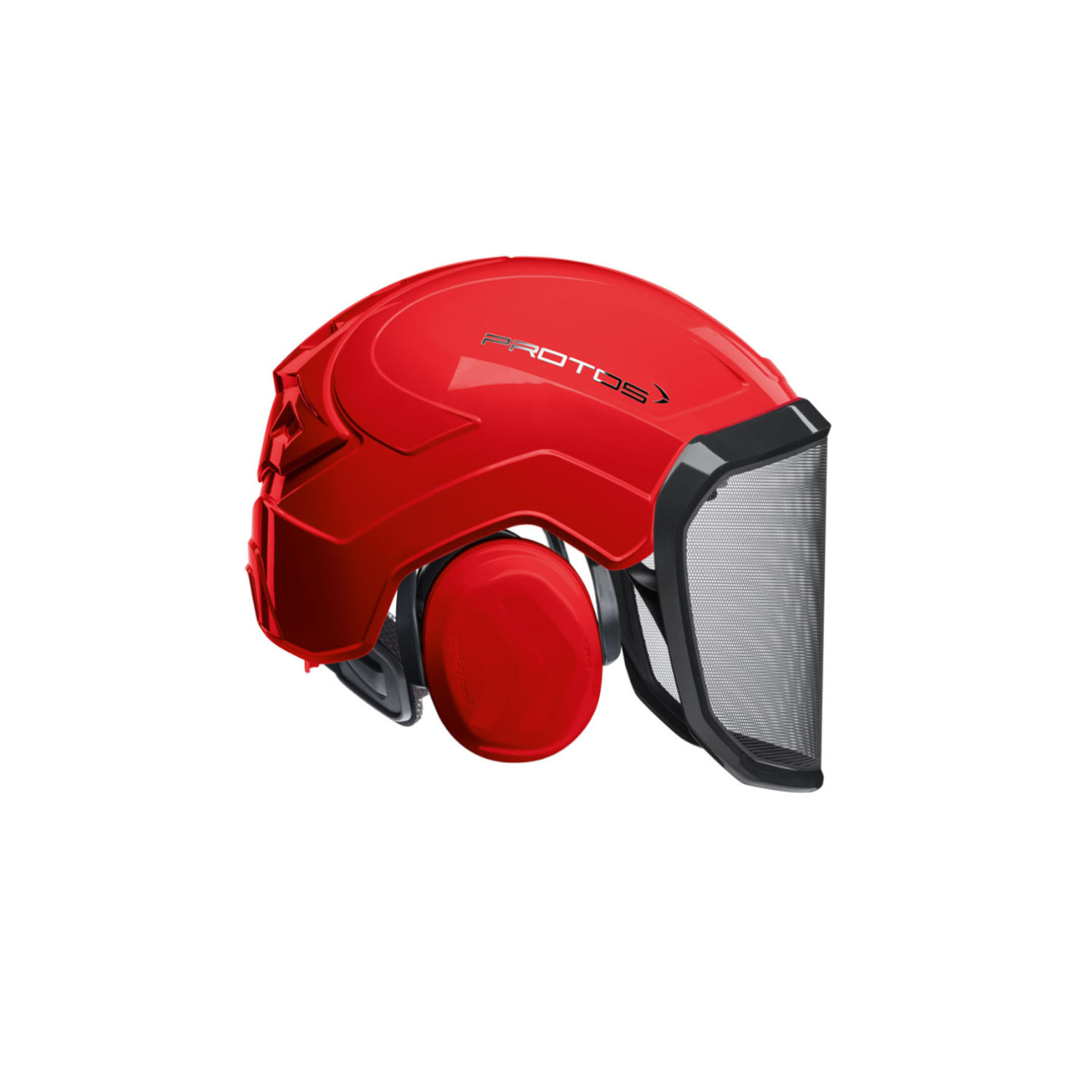 Forst und seine extremen Anforderungen waren und sind die Ausgangslage für die Entwicklung von PROTOS®. Vom Visier bis zum Gehörschutz sind alle Bauteile integral konstruiert und verhindern ein Hängen?bleiben an Ästen, Sträuchern oder Dornen. Auch wenn sich der Gesichts- oder Gehör?schutz in Parkposition befinden, hält PROTOS® perfekt am Kopf.