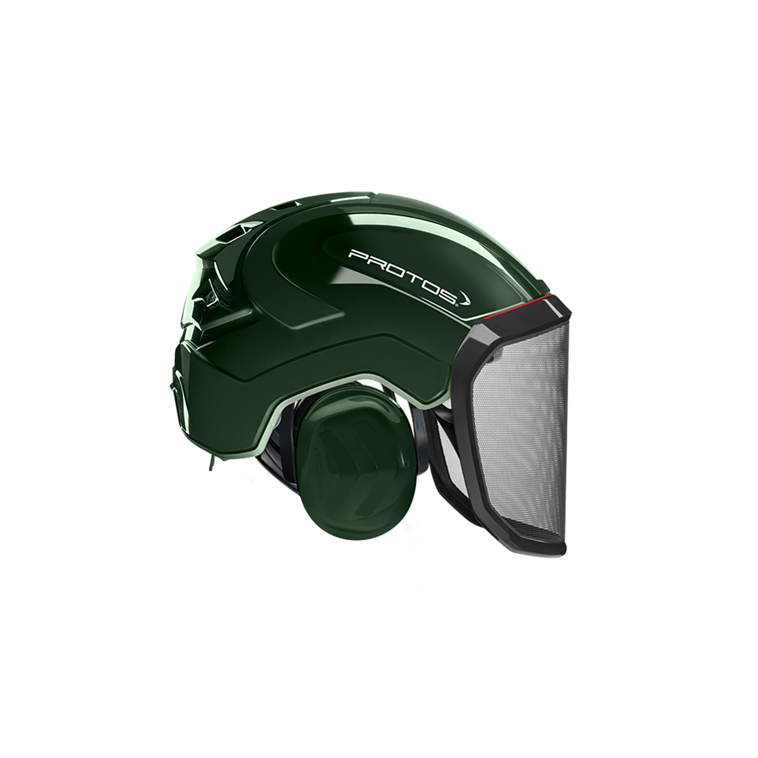 Forst und seine extremen Anforderungen waren und sind die Ausgangslage für die Entwicklung von PROTOS®. Vom Visier bis zum Gehörschutz sind alle Bauteile integral konstruiert und verhindern ein Hängen?bleiben an Ästen, Sträuchern oder Dornen. Auch wenn sich der Gesichts- oder Gehör?schutz in Parkposition befinden, hält PROTOS® perfekt am Kopf.