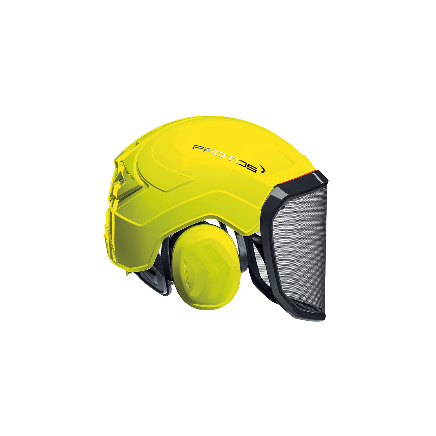 Forst und seine extremen Anforderungen waren und sind die Ausgangslage für die Entwicklung von PROTOS®. Vom Visier bis zum Gehörschutz sind alle Bauteile integral konstruiert und verhindern ein Hängen?bleiben an Ästen, Sträuchern oder Dornen. Auch wenn sich der Gesichts- oder Gehör?schutz in Parkposition befinden, hält PROTOS® perfekt am Kopf.