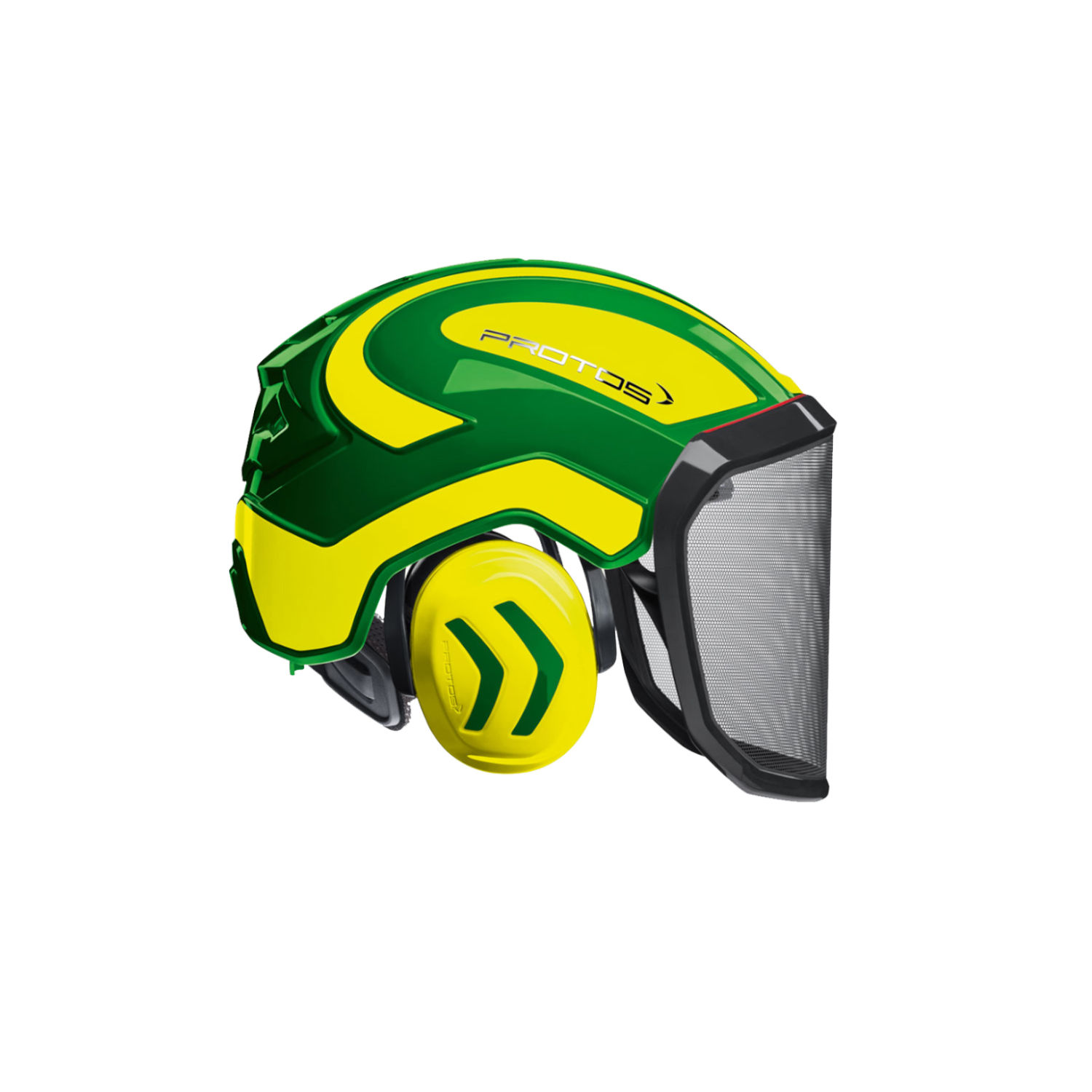 Forst und seine extremen Anforderungen waren und sind die Ausgangslage für die Entwicklung von PROTOS®. Vom Visier bis zum Gehörschutz sind alle Bauteile integral konstruiert und verhindern ein Hängen?bleiben an Ästen, Sträuchern oder Dornen. Auch wenn sich der Gesichts- oder Gehör?schutz in Parkposition befinden, hält PROTOS® perfekt am Kopf.