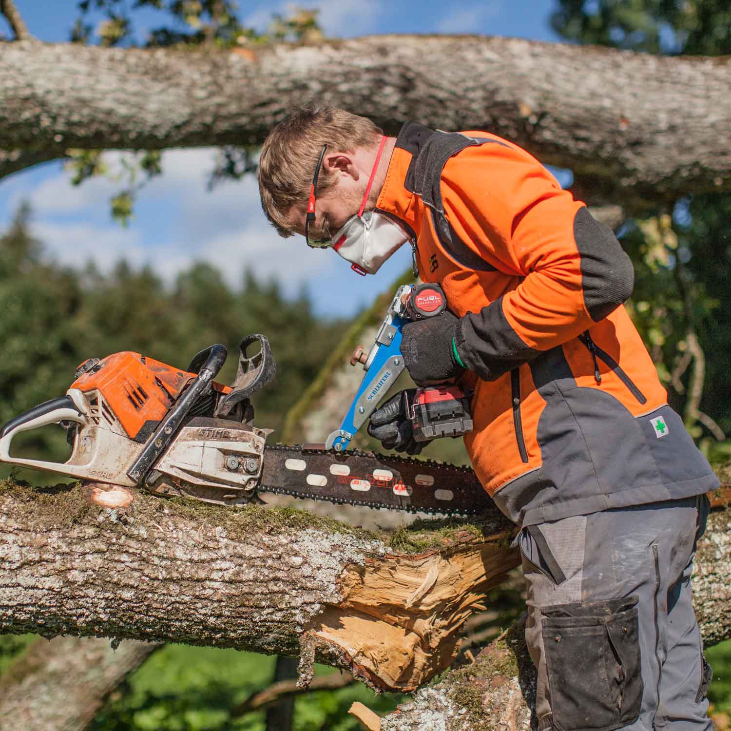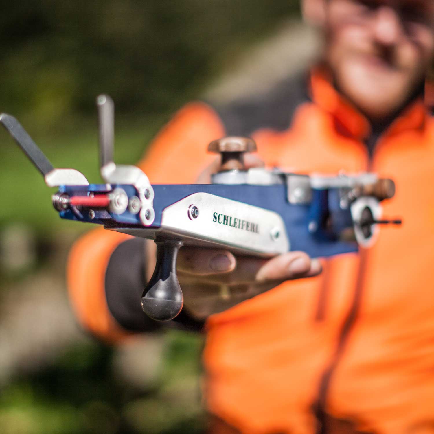 Das Schleiferl von BaSt-Ing, im neuen Design und weiterentwickelt, ist ein praktisches Schärfwerkzeug und ermöglicht schnelles Schärfen von Kettensägen direkt am Einsatzort. Es arbeitet mit einem Schleifband, das über kleine Hex-Schrauber angetrieben wird. Die Drehzahl der Schrauber sollte mind. 3000 U/min betragen. Das Schleiferl ist für alle gängigen Kettengrößen geeignet – von kleinen 1/4" Picco-Ketten bis Harvesterketten. Durch die kompakte Bauweise kann das Schleiferl einfach mit zum Einsatzort genommen werden und steht somit immer dann zur Verfügung, wenn es benötigt wird. Ein Wechsel des Schleifbandes ist in kürzester Zeit erledigt. Für eine lange Lebensdauer des Schleifbandes empfiehlt sich eine hohe Drehzahl und ein geringer Anpressdruck.