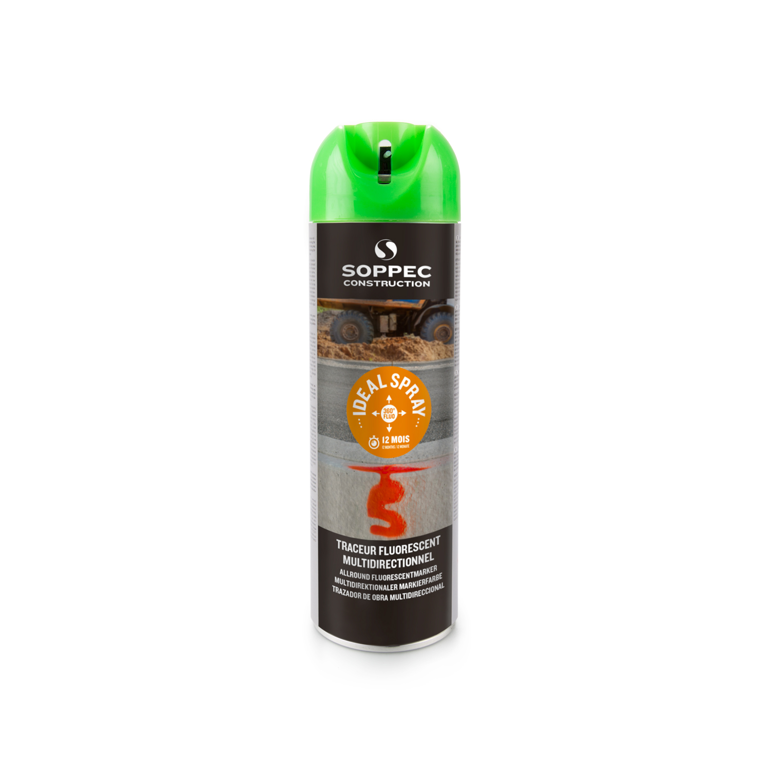 Dieser Spray ist der Baustellenmarkierer in Leuchtfarben. Er ist für provisorische Markierungen konzipiert und bis zu 12 Monate sichtbar. Soppec Sprays zeichnen sich durch große Wetterbeständigkeit, zuverlässiger Arbeitsweise, einem gleichmäßigen Sprühstrahl und der ergonomischen Dosenklappe in Farbe des Doseninhalts aus. Sie sind frei von FCKWs, FCKs, Blei, Kadmium und Toluol. Downloads 225-RT-Fluo TP Version 34_1 28_02_2023