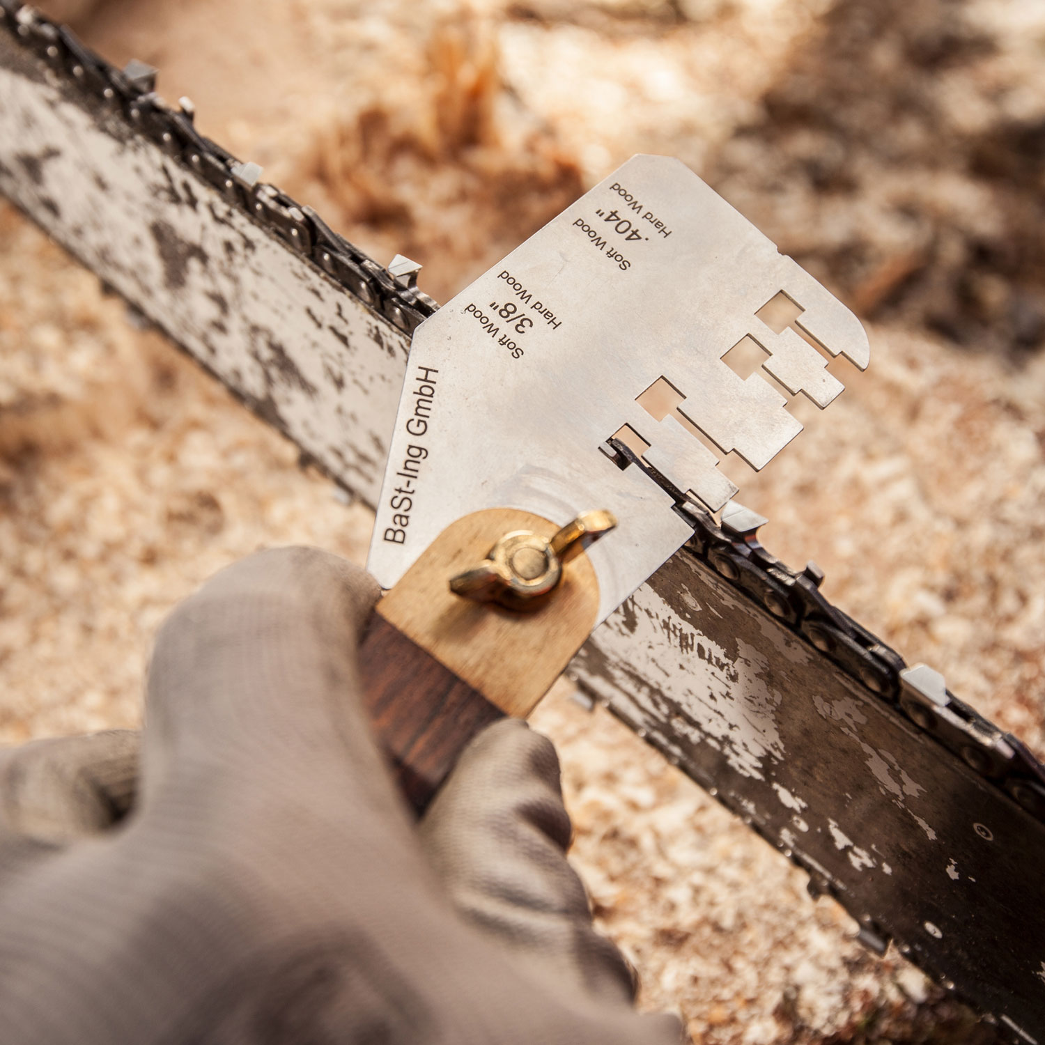 Diese universelle Feillehre ermöglicht optimale Feilergebnisse während der gesamten Lebensdauer der Kette. Die Schnitteigenschaften werden verbessert und gleichzeitig die Lebensdauer der Kette verlängert. Das Werkzeug ist gleichzeitig eine Tiefenbegrenzerlehre.