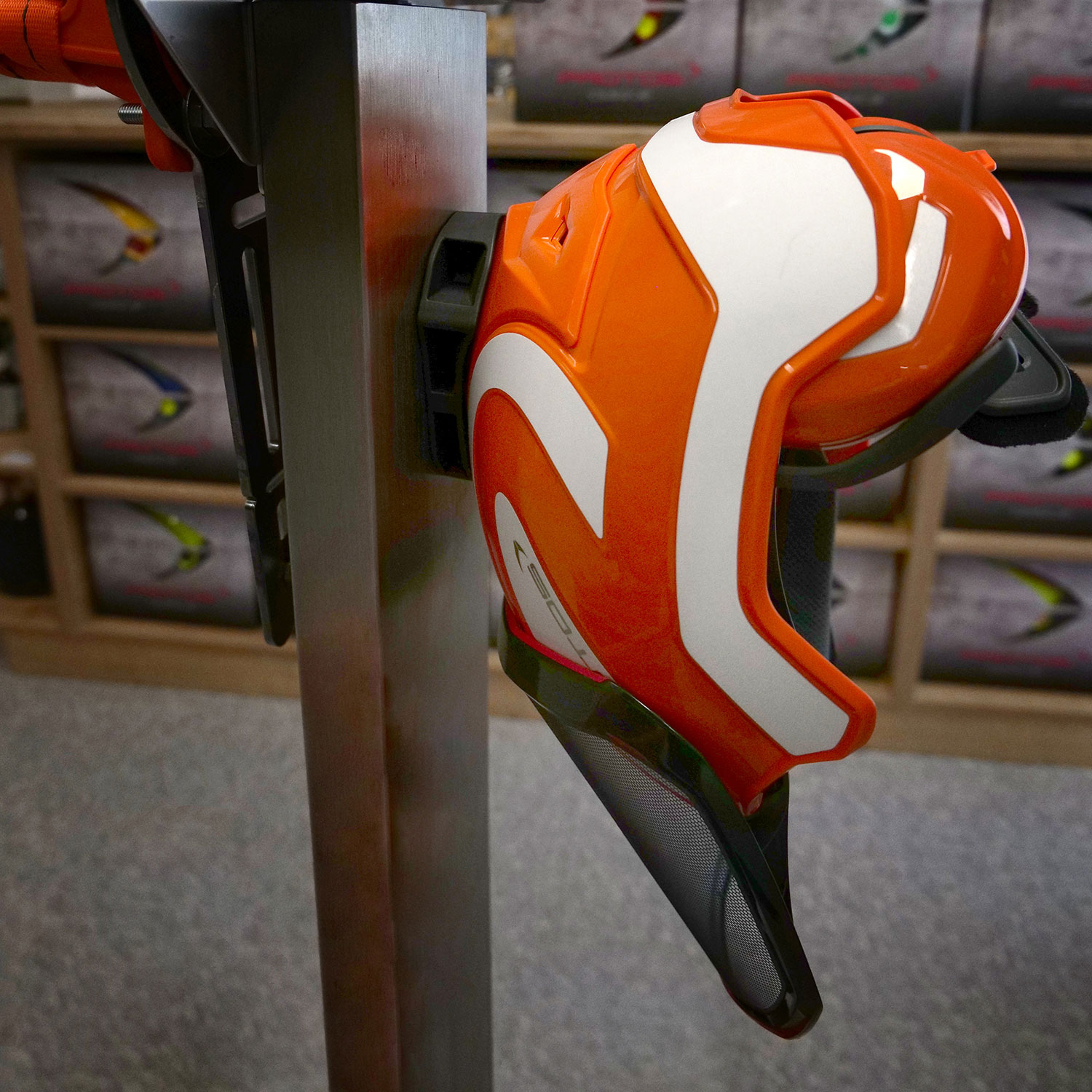 Dieser Halter dient zur praktischen und beschädigungsfreien Aufbewahrung des PROTOS© Integral Forest Schutzhelms. Der Halter ist aus einem sehr starken und zähelstastischen Hochleistungselastomer. Durch die spezielle Halteposition trocknet der Kopfschutz optimal aus und benötigt darüber hinaus wenig Stauraum.