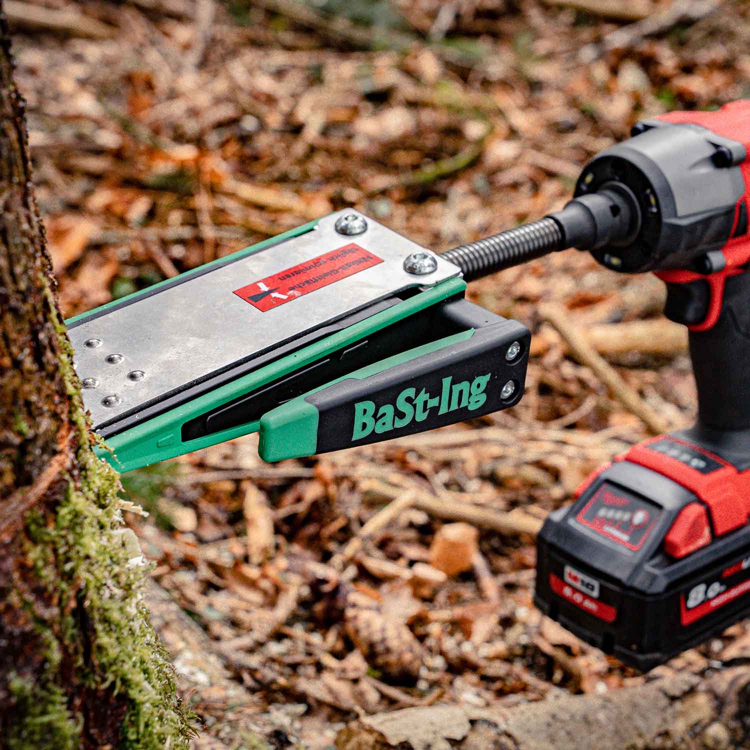 Der ValLink von BaSt-Ing ist ein cleveres Verbindungsstück, das bei der Benutzung vom ValFast Fällkeil als auch beim DrillFast Erdbohrer seinen Einsatz findet. Einfach auf den Schlagschrauber geschraubt, werden Schlagschrauber und ValFast oder DrillFast mittels eines Exzenterspanners verbunden. Durch das Lösen von zwei Schrauben kann die Klemmverbindung auch einfach wieder abgenommen werden. Verwendet man den ValLink in Kombination mit dem ValFast Fällkeil lässt sich dieser einfach mit einem Forstmaßband ansteuern, wodurch man beim Fällen des Baumes einige Meter Rückweiche einnehmen kann. Am Stamm herabfallende Äste stellen somit weniger Gefahr dar. In Kombination mit dem DrillFast hat man in Sekundenschnelle ein praktisches Pflanzwerkzeug bei der Hand, das schnelles und wirtschaftliches Setzen von Pflanzen ermöglicht.